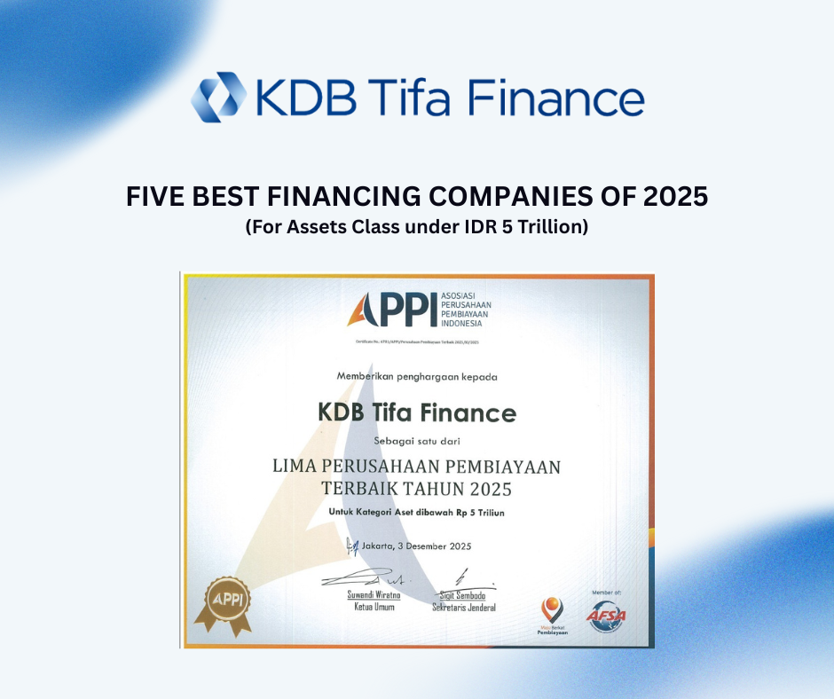 PT KDB Tifa Finance Tbk (“Perseroan”) meraih penghargaan sebagai salah satu dari Lima Perusahaan Pembiayaan Terbaik Tahun 2025 untuk kategori Aset di bawah Rp 5 Triliun dari Asosiasi Perusahaan Pembiayaan Indonesia (APPI). Penghargaan bergengsi ini diberikan pada Rabu (3/12/2025) di The Raffles Hotel, Jakarta sebagai bentuk apresiasi APPI kepada perusahaan pembiayaan yang mampu menunjukkan kinerja unggul dan tata kelola yang solid di tengah dinamika industri.