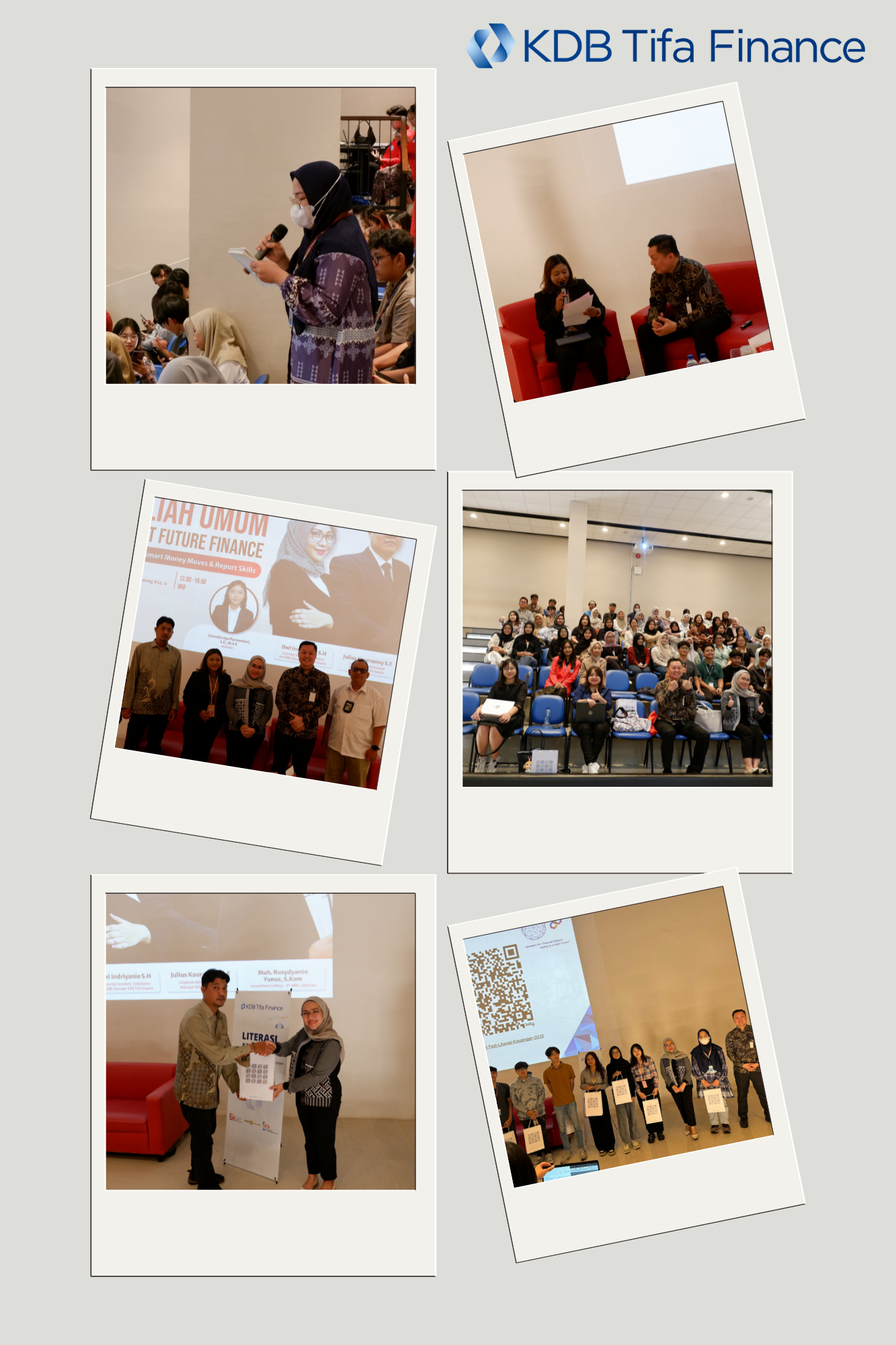 Dalam rangka memberikan dukungan dan partisipasi atas program Otoritas Jasa Keuangan (OJK) guna meningkatkan Literasi Keuangan masyarakat Indonesia khususnya generasi muda, PT KDB Tifa Finance Tbk (“Perseroan”) kembali menyelenggarakan kegiatan edukasi Literasi Keuangan berkolaborasi dengan PT MNC Sekuritas, Universitas Pembangunan Jaya dan Jaya Stock Club. Kegiatan yang diselenggarakan pada Selasa 25 Februari 2025 bertempat di Kampus A Universitas Pembangunan Jaya Bintaro, diikuti oleh 132 (seratus tiga puluh dua) mahasiswa dan mahasiswi serta dosen-dosen dari Fakultas Humaniora dan Bisnis. Kegiatan ini mengangkat tema “Smart Future Finance – Unlocking Smart Money Moves and Report Skills” dimana materi-materi yang disampaikan adalah terkait dengan pengenalan perusahaan pembiayaan bagi generasi muda dan pengenalan terkait investasi Keuangan. Tema tersebut diangkat untuk memberikan gambaran umum mengenai perusahaan pembiayaan, seperti risiko perusahaan pembiayaan, hak dan kewajiban konsumen, produk perusahaan pembiayaan, serta lainnya, disamping memperkenalkan Perseroan sebagai salah satu emiten dan perusahaan terbuka di Indonesia. Kegiatan tersebut berjalan dengan sangat baik dan disambut dengan antusiame dari seluruh peserta dan pemateri. Kedepan, Perseroan berharap untuk dapat terus memberikan kontribusi nyata terhadap peningkatan Literasi Keuangan di Indonesia yang masih cukup rendah, dengan kolaborasi untuk mencapai hasil yang masif.
