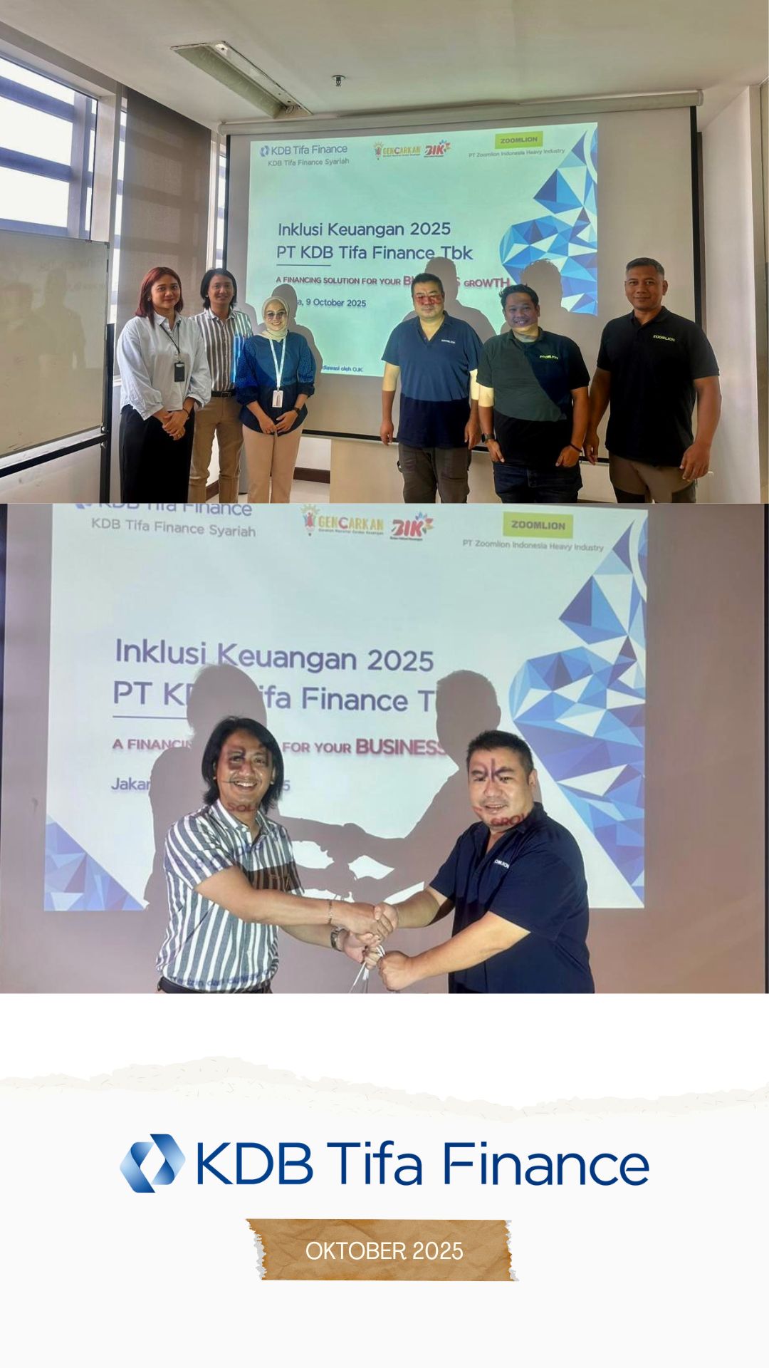 PT KDB Tifa Finance Tbk (“Perseroan”) kembali menyelenggarakan kegiatan Inklusi Keuangan untuk yang kedua kalinya pada tahun ini. Kegiatan Inklusi Keuangan merupakan program tahunan yang wajib dilaksanakan oleh Perseroan. Kali ini, kegiatan dilaksanakan pada tanggal 9 Oktober 2025 bersama PT Zoomlion Indonesia Heavy Industry dengan tema “A Financing Solution for Your Business Growth”. Kegiatan Inklusi Keuangan dilakukan dengan tujuan untuk meningkatkan penggunaan serta kualitas pemanfaatan produk dan/atau layanan jasa keuangan sesuai dengan kebutuhan dan kemampuan. Kegiatan ini kedepannya diharapkan dapat menjadi dasar dalam menjalin hubungan yang lebih erat antara kedua pihak serta membuka peluang bisnis bagi para pihak di masa depan.