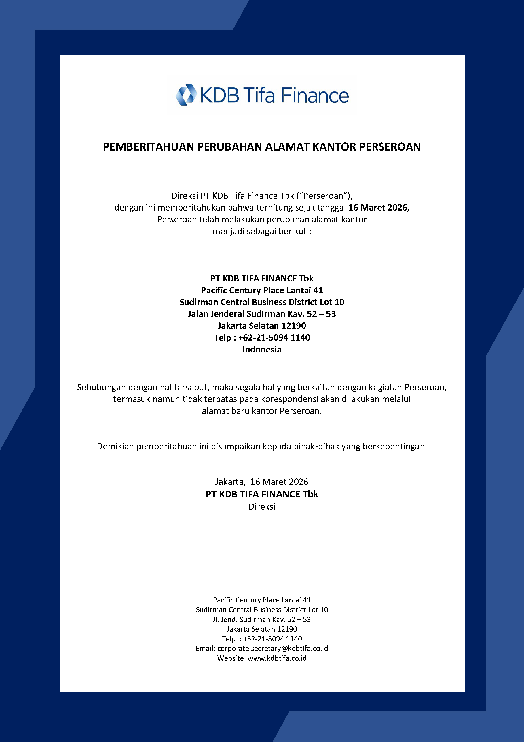 PT KDB Tifa Finance Tbk (“Perseroan”) telah menyelenggarakan kegiatan Inklusi Keuangan pada 13 Februari 2026, bekerja sama dengan PT Skayr Global Rekacipta, dengan mengusung tema....